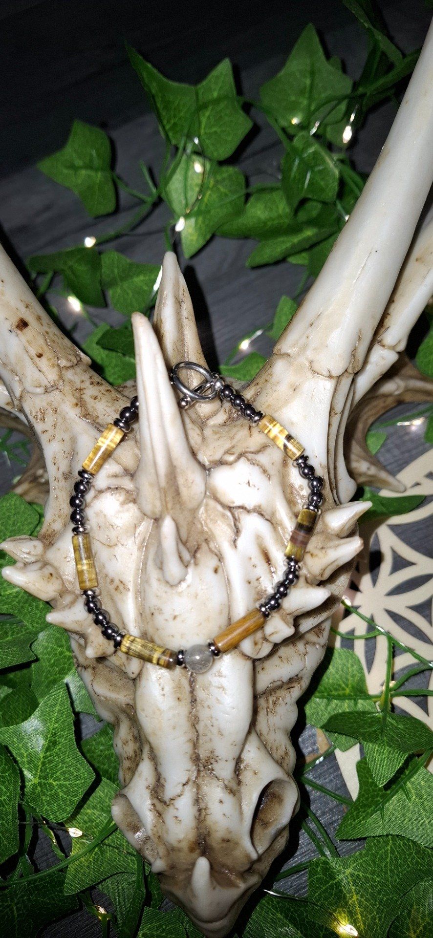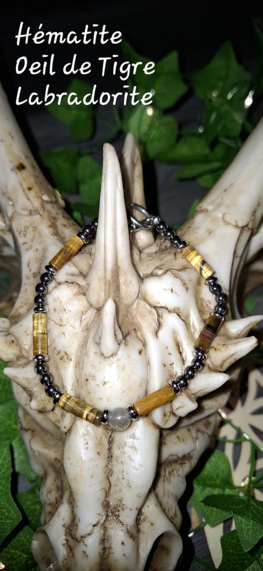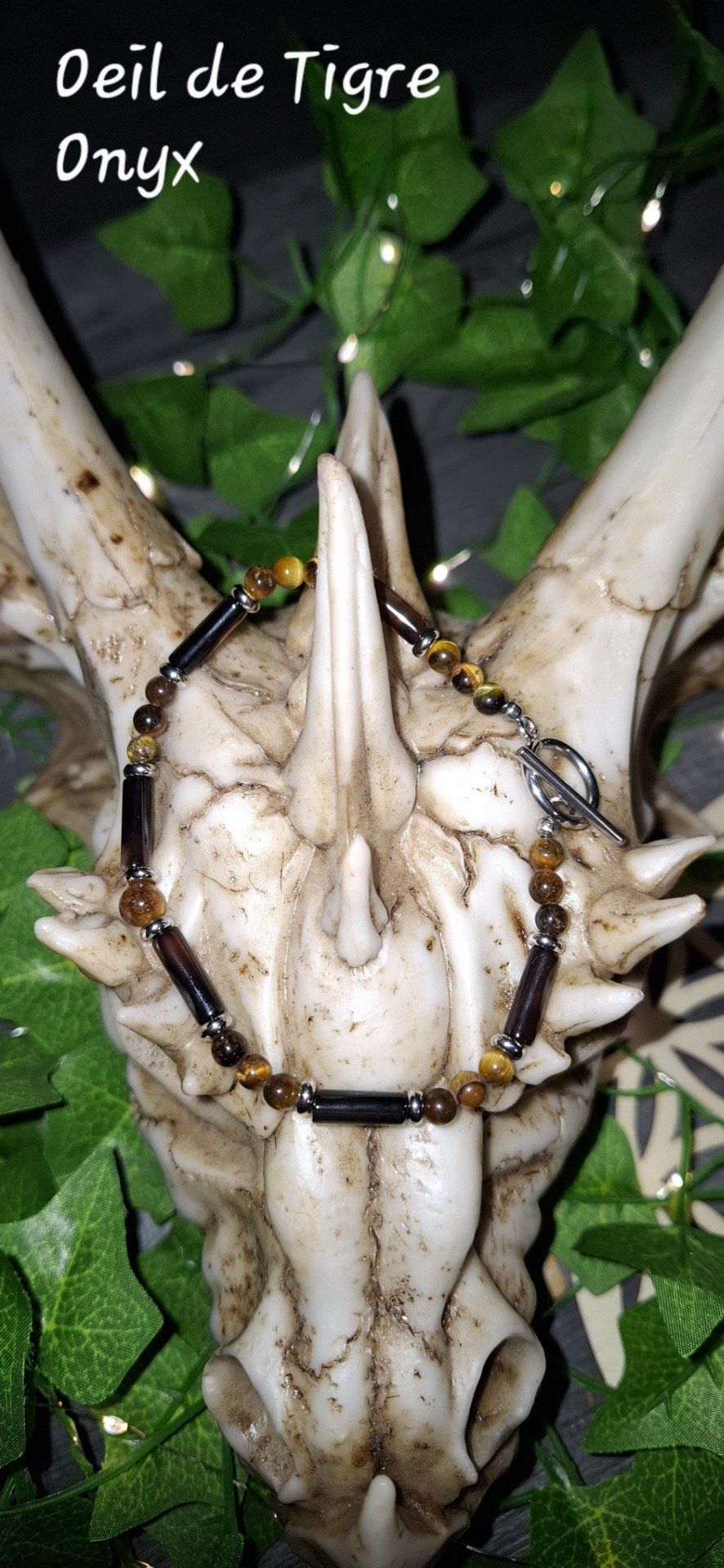 Bracelet Homme 18 cm en acier inoxydable et pierre naturelle 5 mm. Au choix: